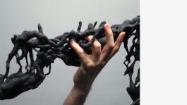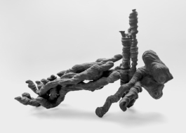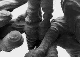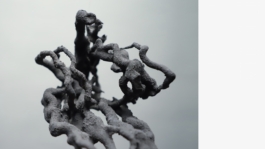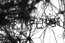Das nebenstehende Wort-Objekte, das inspiriert von den getrockneten Ästen des Gemäldes "Abtei im Eichenwald" von Caspar David Friedrich entworfen wurde, erzeugt durch seine Formen, die raue Oberfläche und das Wechselspiel von Licht und Schatten einen unruhigen Raum und Gefühl.