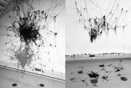 Installation: Verknüpfte Fäden aufgespannt im Raum