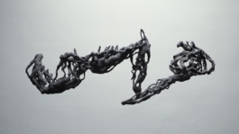 Alberto Giacometti mit seinen Figuren, die ängstlich, zitternd und schwach erscheinen, sind die Inspiration für die Ästhetik dieses Wort-Objekts. Wie bei alle anderen Objekte auch, ist das zugrundeliegende Wort ("Angst" auf Persisch) hier auch lesbar.