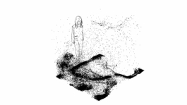 Diese Visualisierung zeigt eine immersive "Angst" (haras), in die das Publikum eintreten und sie näher erleben kann. Wie in Bild 3/5 zu sehen ist, gibt es weitere Wörter, die in dem Gewebe der Angst verborgen sind und die Bedeutung des Wortes weiter entfalten. Die Besucher haben die Möglichkeit, die verborgenen Wörter mit einer Schere abzutrennen und mitzunehmen. Durch diesen Akt zerfällt die Angst mit der Zeit, wie in Bild 4/5 zu sehen ist.